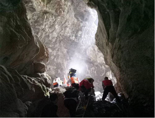速降過后,進入溶洞探險,這是一項勇者的運動,穿行于錯綜復雜的神秘地下世界,是對體力、耐力、技術和心理素質的極大考驗,隊員們打開各自手電筒,相互協(xié)助,沿著溪水,往深黑的洞穴慢慢探索。